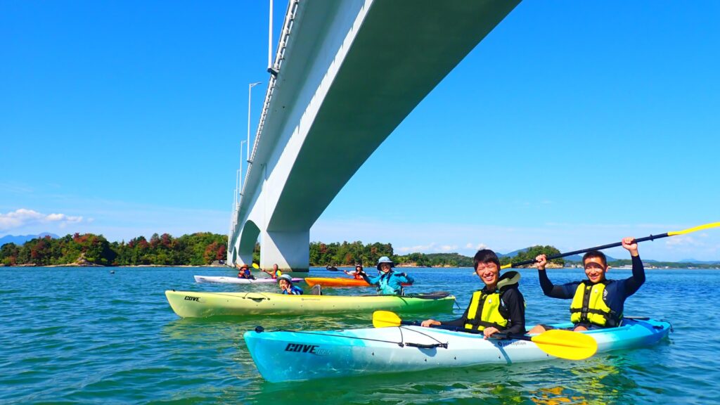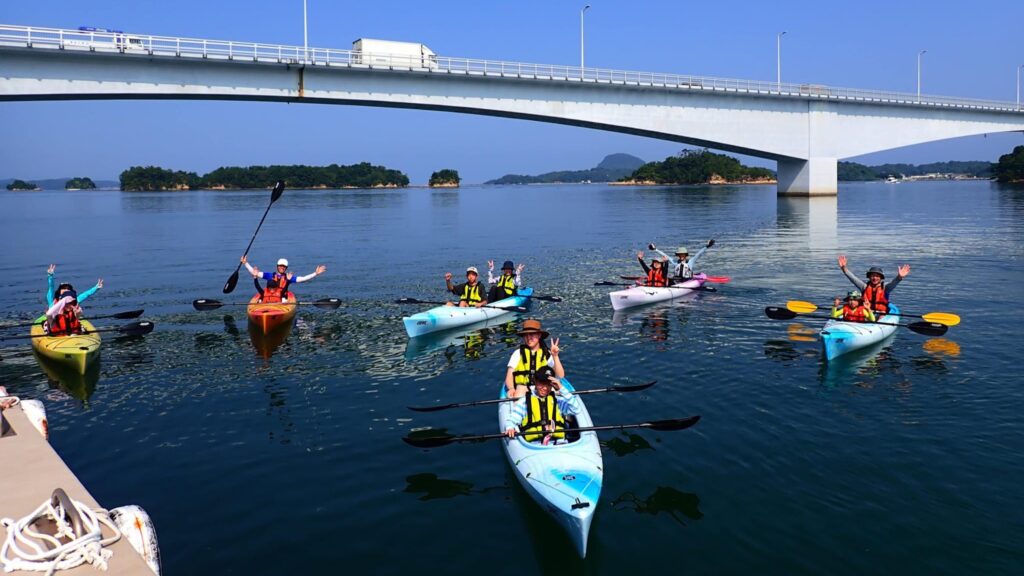 準備ができたら、いよいよカヤックに乗り込んで海へ漕ぎ出します。水面が近くなるカヤックならではの視点で、天草の青い海を全身で感じてください。
