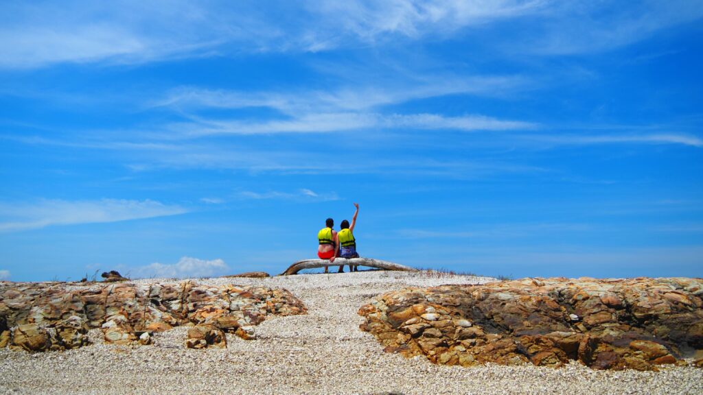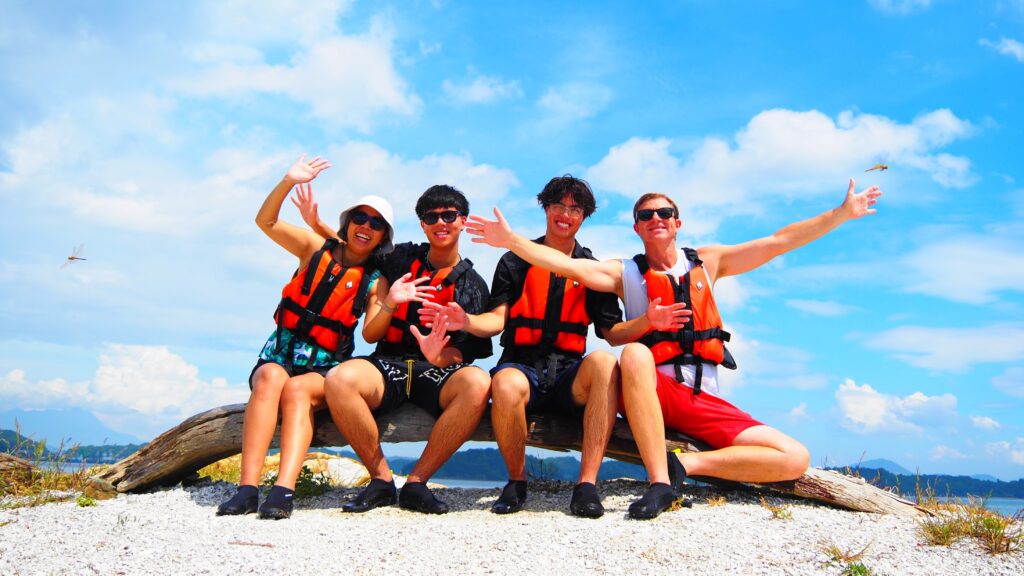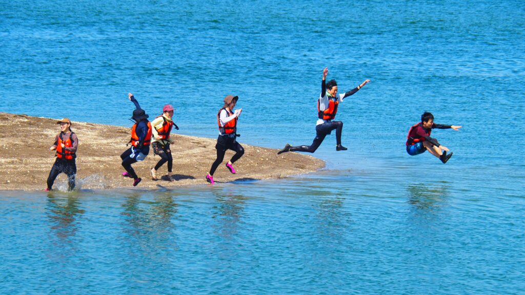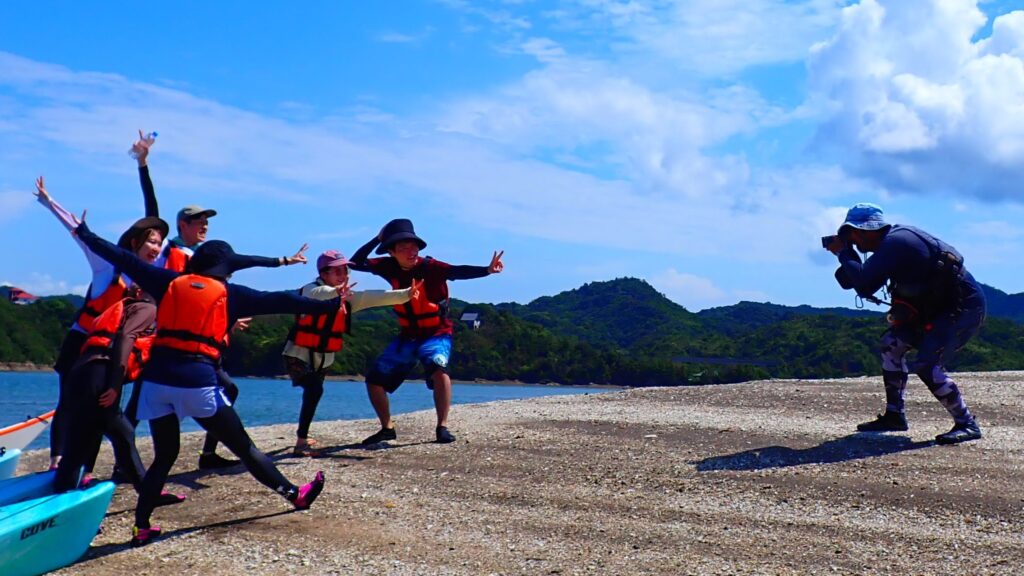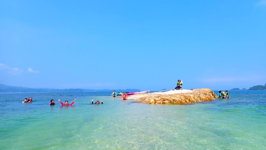 ついに目的地へ到着!誰もいない無人島は、まるでプライベートリゾート。真っ白な砂浜にカヤックを並べたら、ここからは自由な遊びの時間です。